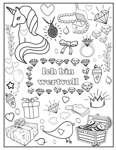 Dieses Malbuch enthält hunderte wundervolle Motive wodurch Ihrem Kind viele, viele Stunden Spaß und eine Beschäftigung garantiert ist. Es sind Motive enthalten wie: Einhörner, Schmetterlinge, Astronauten, Naturszenen, Bäume, Blumen, Vögel, Fische, Pferde, einen Bär, Puppen, Tiere, Herzen, Sternen, Katzen, Hunde, Regenbogen, Drachen, Meereswellen, Schulsachen, Süßigkeiten, Spielzeuge, Instrumente, eine Gitarre, ein Klavier, ein Zug, ein Teleskop, ein Baumhaus, eine Weltraumszene, Delfine, Elefanten, Klettern, ein Mikroskop, einen Ball, einen Hasen, einen Schatz, Geschenke, eine Lupe, Bücher, eine Geige, eine Violine, eine Sandburg, eine Eiskönigin, Bastelsachen, eine Ente, eine Familie, mathematische Gleichungen, Tanzen, welche die innere Schönheit zum Vorschein bringen und vieles, vieles mehr.
